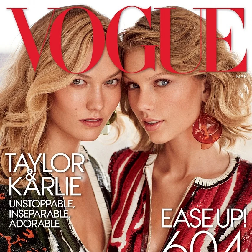 CREATIVE PUBLISHING CRITICAL JOURNALISM: The upcoming March Vogue cover chronicles Taylor Swift and Karlie Kloss’s friendship, heralding the blonde twosome with the tagline “Taylor & Karlie. Unstoppable, Inseparable, Adorable.” (19 February 2015)